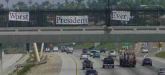 La pubblicità nella sua debordante espansione alla disperata ricerca d'attenzione da parte di potenziali acquirenti ci indica quotidianamente come sfruttare ogni possibile millimetro quadro pubblico per 'fare comunicazione', nell'illusione (ahinoi supportata da studi statistici) che ogni ripetizione di un dato messaggio contribuisca significativamente alla sua permanenza nella nostra memoria. Gli spazi pubblici, quindi, sono diventati un'arena che ingaggia le nostre menti in un tour de force di stimoli, la maggior parte dei quali omologati in un pugno di categorie standard. Freewayblogger è un attivista che scelto come suo terreno d'azione le autostrade (highways) americane. Il suo attacco mediatico si espleta in gradi cartelli appesi ai ponti, calvalcavia, recinzioni, muretti di protezione e quant'altro contorni le grandi arterie percorse dalle automobili. Quest'attività, oltre ad avere una serie di non banali questioni pratiche e legali (tutte debitamente affrontate dallo stesso autore), combina diverse discipline, inclusa ovviamente, quella della comunicazione di massa. A rimarcarne l'importanza basta provare a stimare il numero di potenziali utenti di questi messaggi che possono arrivare anche a decine di migliaia in zone particolarmente trafficate. Il tutto fabbricato con mezzi poverissimi, ma attentamente studiato e documentato, per la sua espansione virale, su un sito web che ne documenta azioni e tecniche.